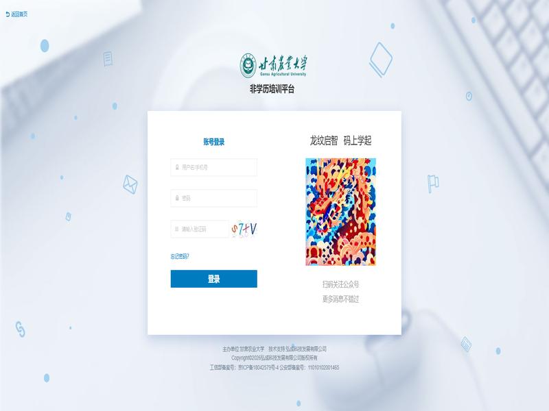 很多学员反映在甘肃农业大学非学历培训平台上学习进度很慢,主要原因是平台要求视频+考试(不支持人脸) 格式:账号 密码 培训名。