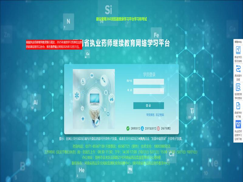河南省执业药师协会-河南省执业药师继续教育网络学习平台的学习要求包括:视频+考试 加速 格式:账号 密码 年。这些要求虽然全面,但也意味着学员需要投入大量时间和精力。