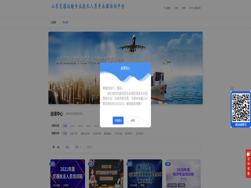 山东交通运输专业技术人员公需课培训平台-专业课是很多学员都在使用的学习平台,访问地址:http://zjzyk.train.sdjtysedu.com/index。
