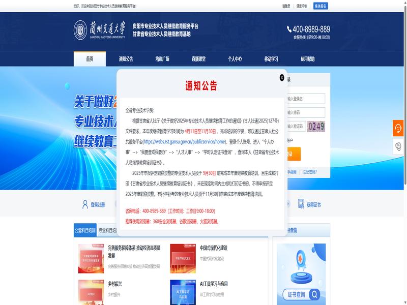 庆阳市专业技术人员继续教育服务平台(http://gsqys.lllnet.cn/)作为一个在线教育平台,为学员提供了便捷的学习途径。