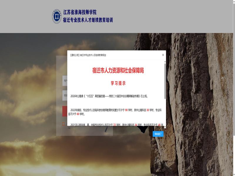 人事人才服务网-江苏省淮海技师学院宿迁专业技术人才继续教育培训采用的是 视频+考试 加速*半小时完成 格式:账号 密码 培训名的学习模式。虽然这种模式比较系统,但也存在一些不便之处。