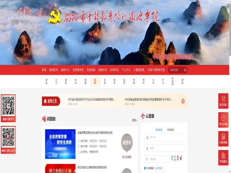 湖南省干部教育培训网络学院-湖南干部-邵阳市是很多学员都在使用的学习平台,访问地址:https://0739.hngbjy.cn/#/home。
