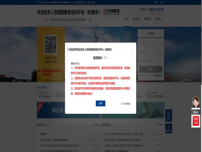 很多学员反映在甘肃省专技(武威市)上学习进度很慢,主要原因是平台要求视频+考试 格式:账号 密码 培训名。