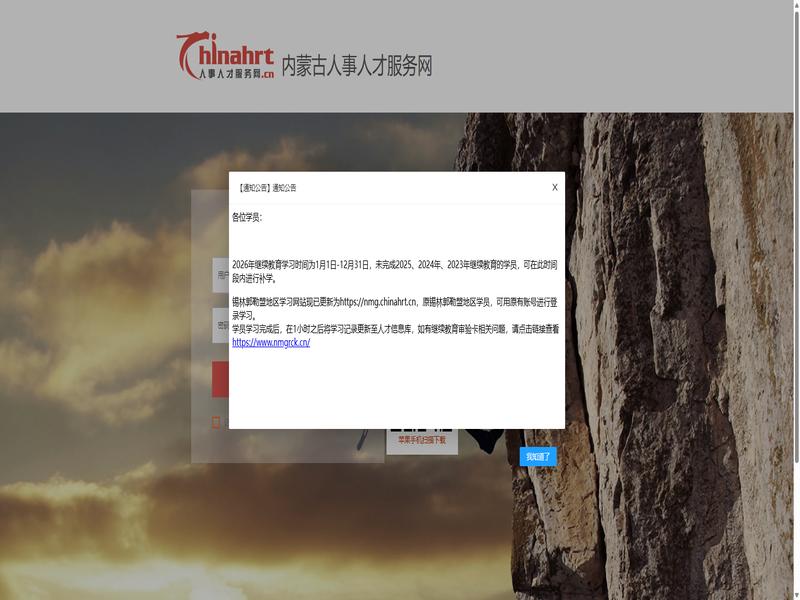 内蒙古人事人才服务网是很多学员都在使用的学习平台,访问地址:https://nmgzj.chinahrt.cn/login.asp?platid=34。