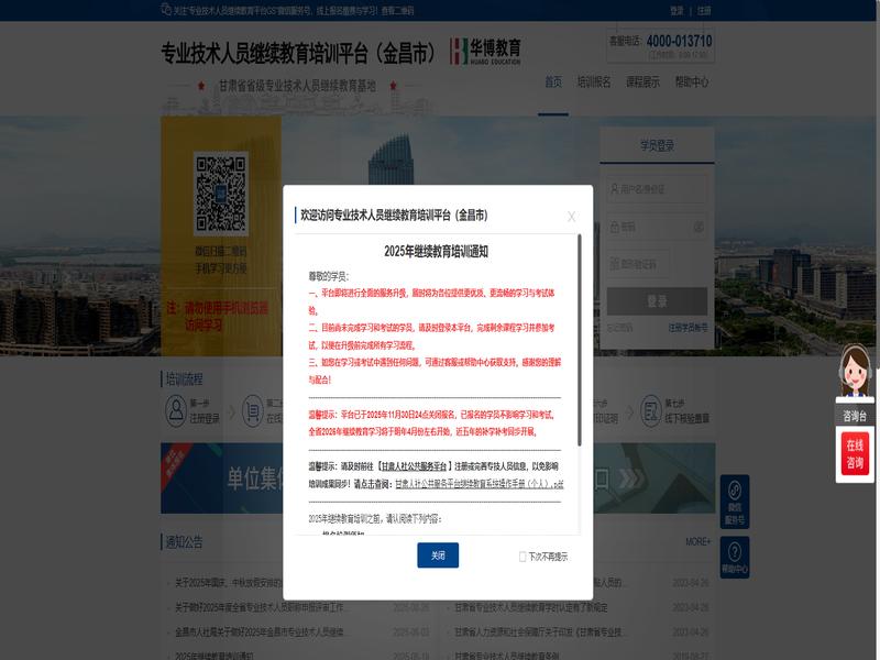 关于华博教育-金昌市的学习,最近收到很多咨询。大家普遍反映视频+考试 格式:账号 密码 培训名的要求比较耗时。