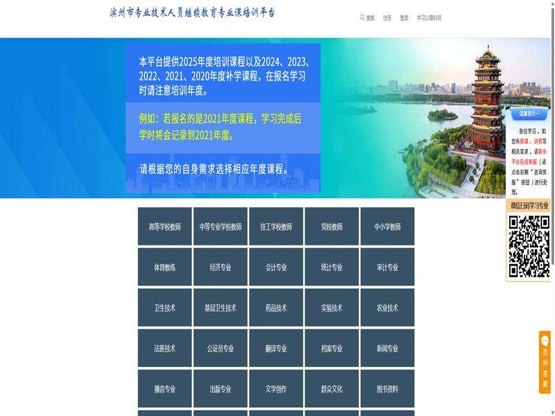 滨州市专业技术人员继续教育专业课培训平台 http://sdbz.zyk.yxlearning.com/index 是一款支持多种学习模式的在线学习平台,广泛应用于学术、技能培训以及职业提升等多个领域。