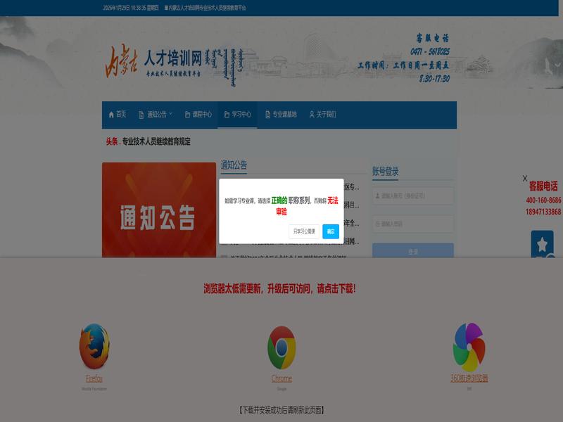 内蒙古人才培训网采用的是 视频+考试 2倍加速 格式:账号 密码 培训名的学习模式。虽然这种模式比较系统,但也存在一些不便之处。