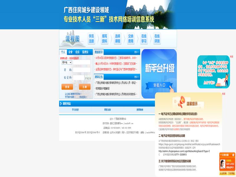 广西住房城乡建设领域专业技术人员三新技术网络培训信息系统 https://jxjy.cdeledu.com/cdel_jxjy/guangxizfcxjs.shtml 是一款支持多种学习模式的在线学习平台,广泛应用于学术、技能培训以及职业提升等多个领域。
