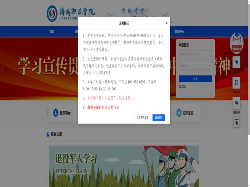 济南职业学院(https://jnvc.tyjrpx.com/Index)作为一个在线教育平台,为学员提供了便捷的学习途径。