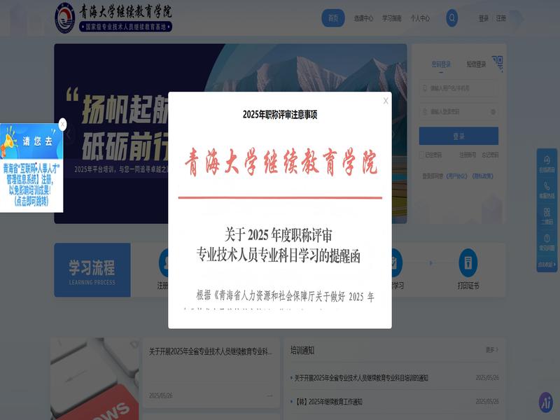 青海大学继续教育学院(https://qhzj-p.webtrn.cn/cms/)作为一个在线教育平台,为学员提供了便捷的学习途径。